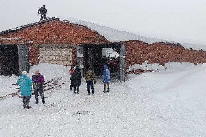 Интенсивные снегопады в Удмуртии привели к убытку животноводческое хозяйство: под тяжестью снега обрушилась часть кровли коровника.